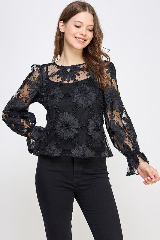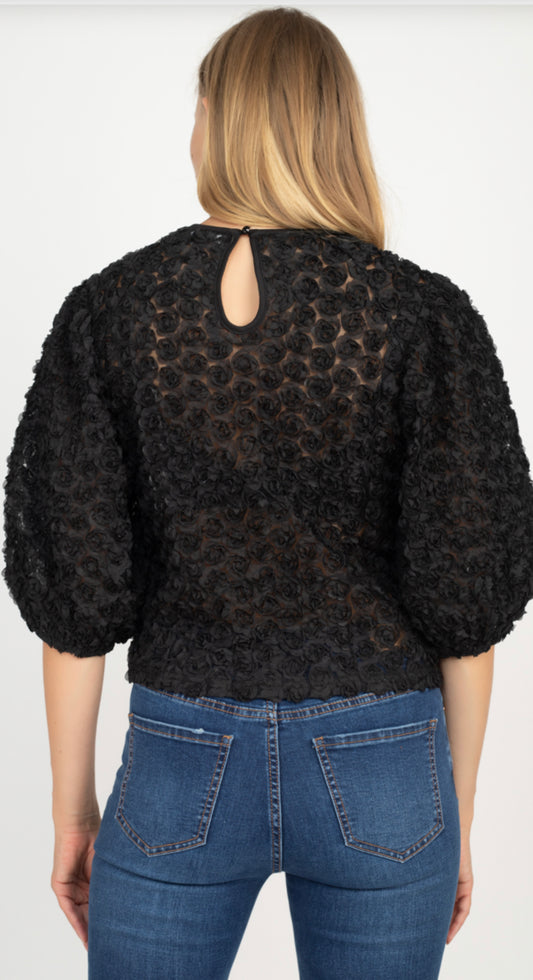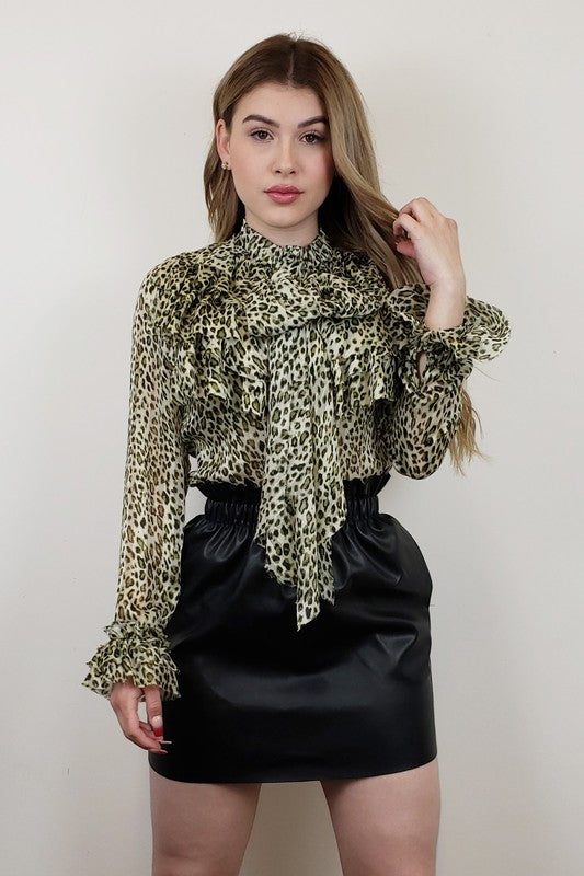 RUFFLE DETAIL LUREX TURTLE NECK TOP