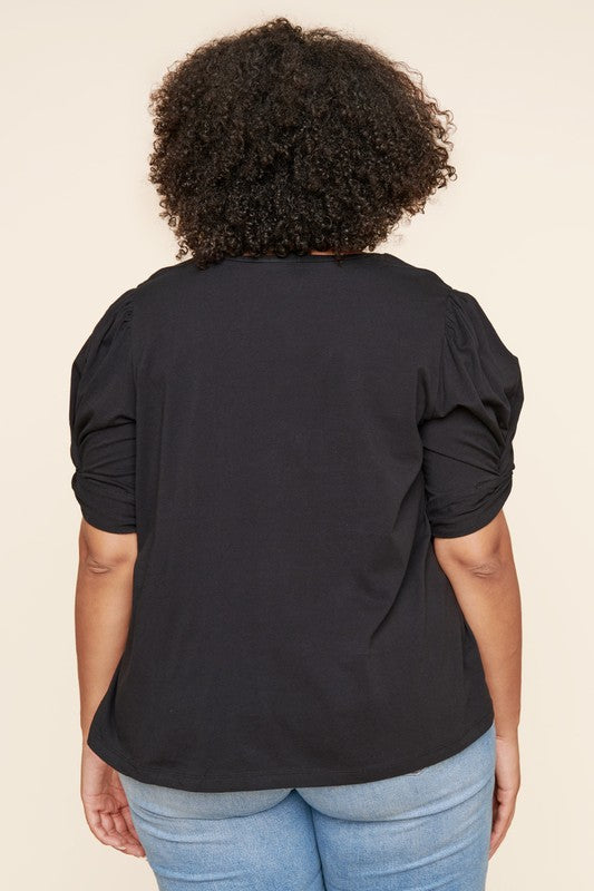 Green Ruffle Shoulder Cotton Knit Top Curve
