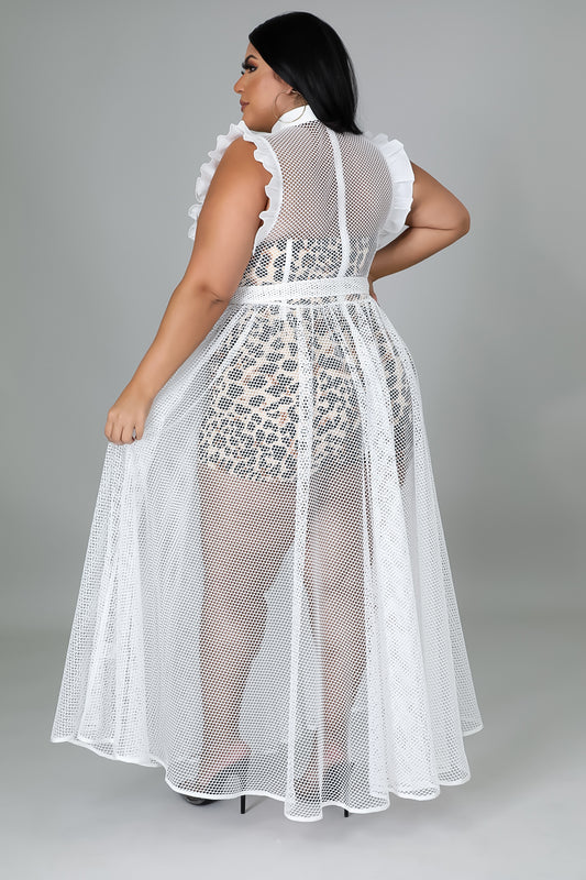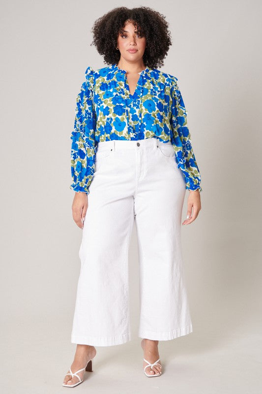 Red Ruffle Shoulder Cotton Knit Top Curve