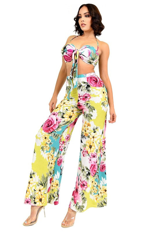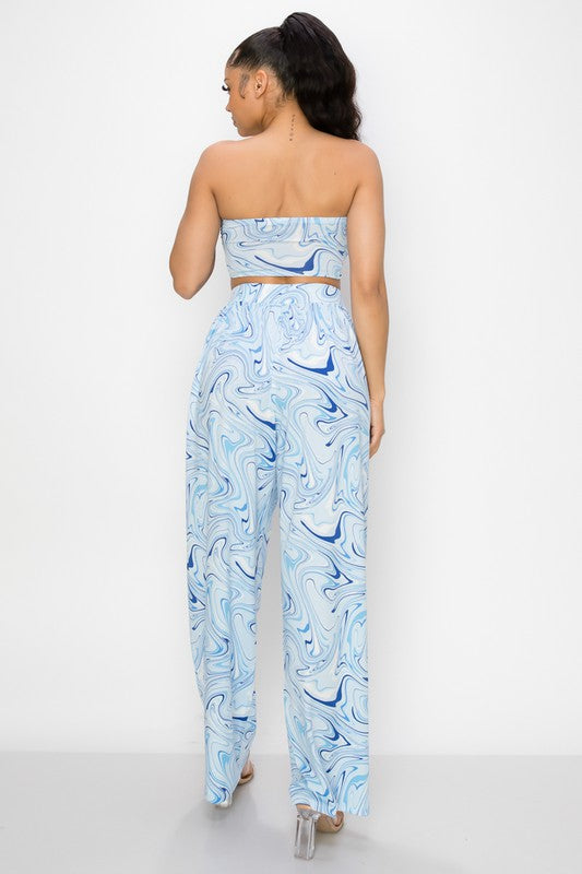 Large V Neck Ruffled Sleeves Top & Denim Flare Pants Set