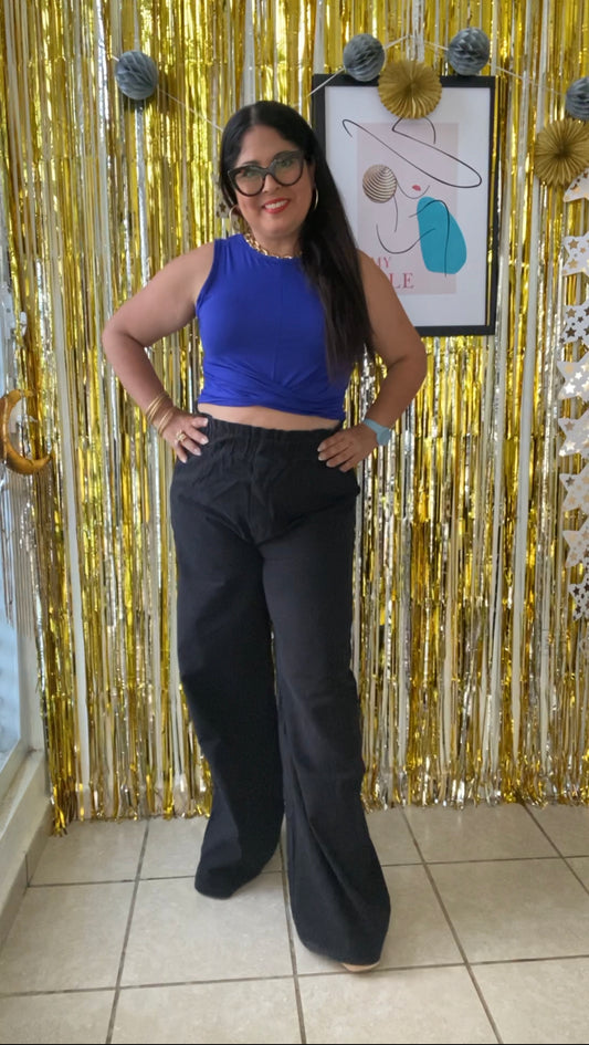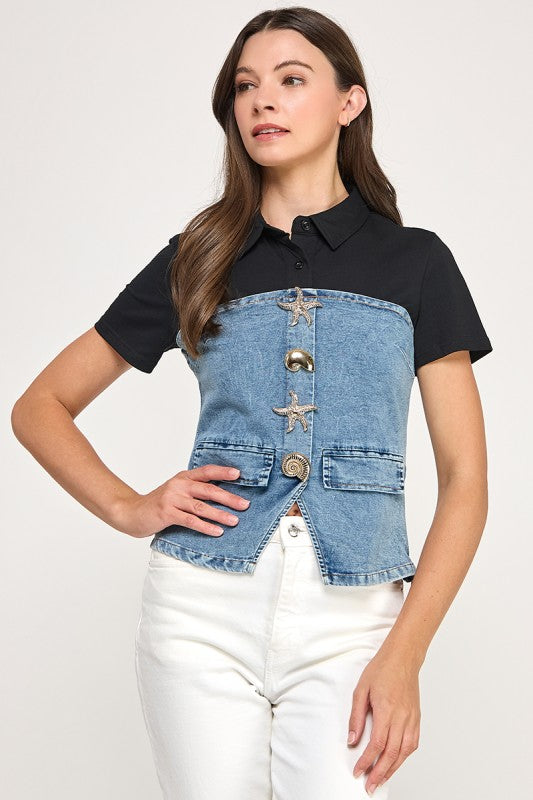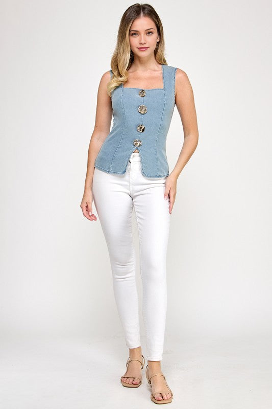 Denim Back Zipper Top