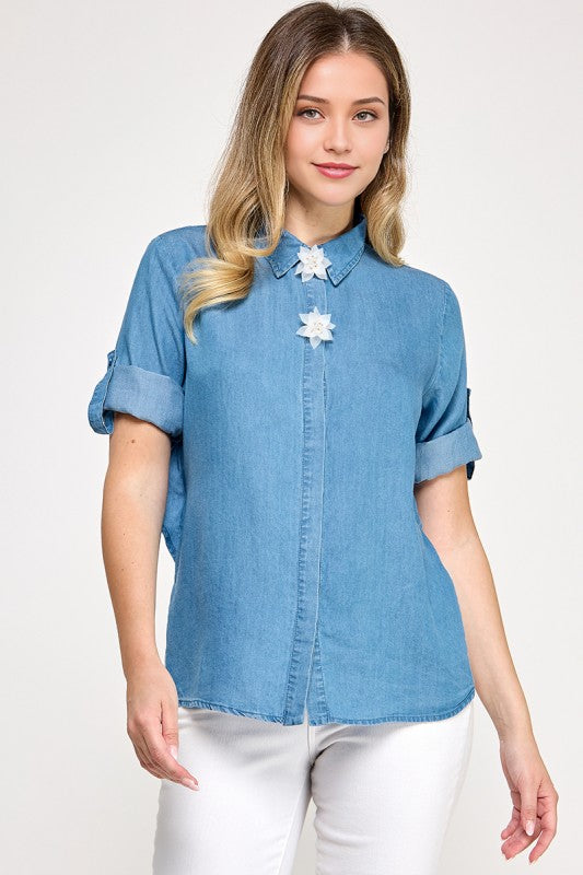 Denim Back in Lace Shirt