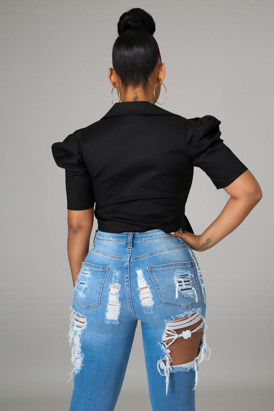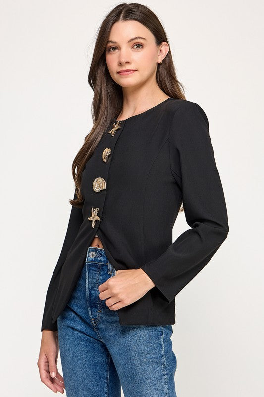 Front Key button with Flyaway sleeve Top (Run Smaller)