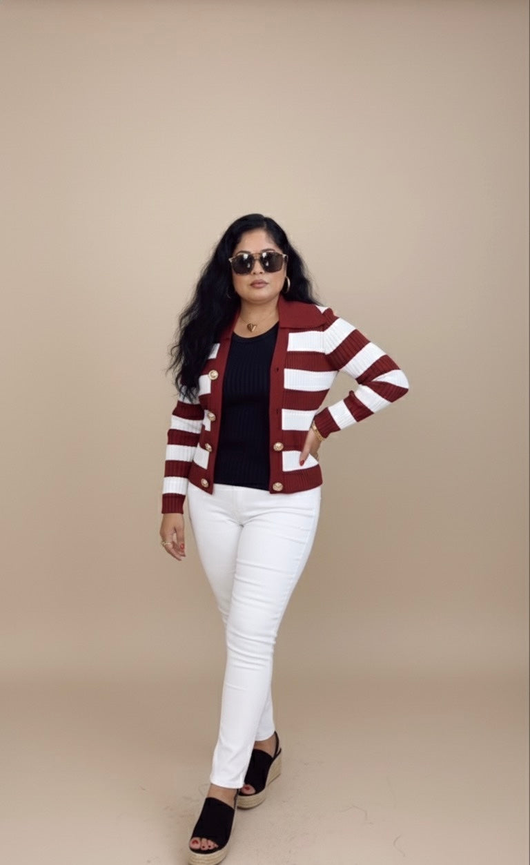 Burgundy Stripe Cardigan